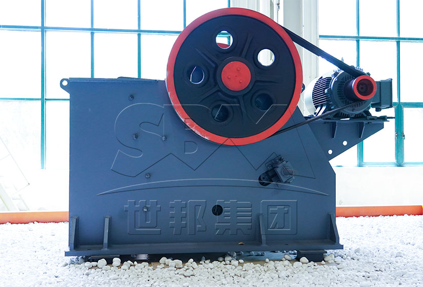 C5X系列颚式破碎机通常以电机驱动作为动力来源,电机通过SPC带将动力输送给皮带轮,皮带轮带动偏心轴转动来驱动动颚体在空间内作复杂的几何轨迹摆动,当动颚板向靠近定颚板的方向运动时,破碎空间体积减小,破碎腔内的物料被挤压或被劈碎,当动颚板向远离定颚板的方向运动时,破碎腔的体积变大,破碎腔内已被破碎的小块物料从下部排料口被排出,以此作出连续循环运动,实现破碎作业。